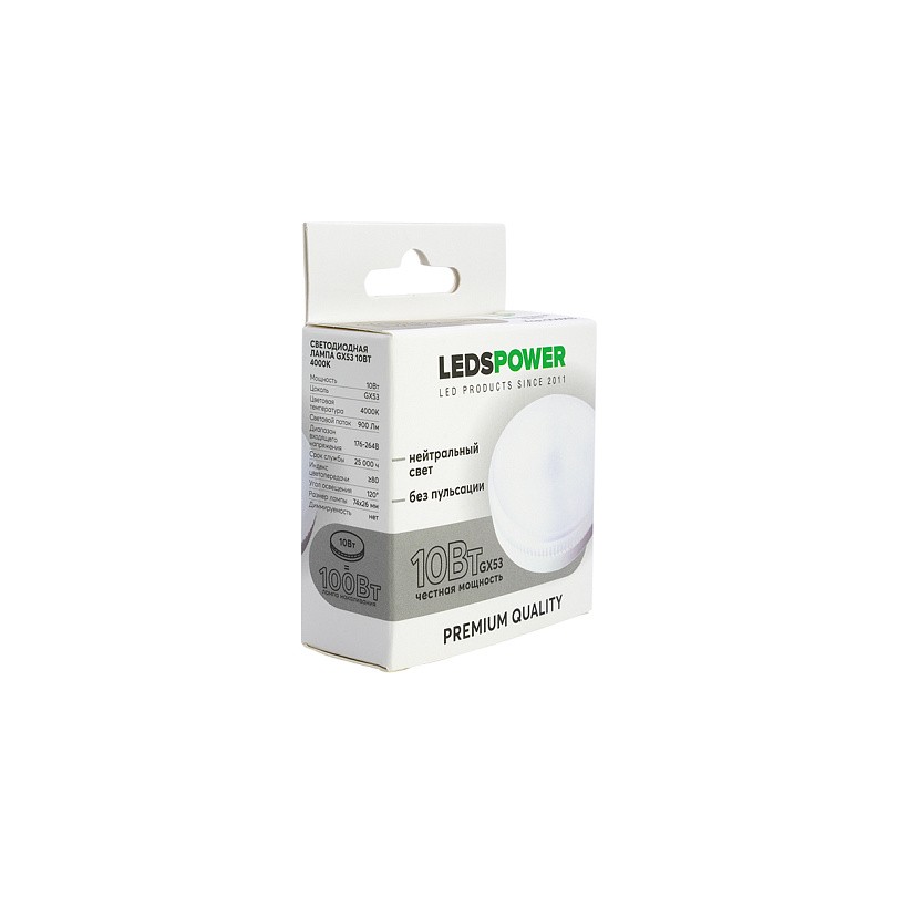 Лампа LEDS POWER GX-53 10Вт 4000К 900ЛМ