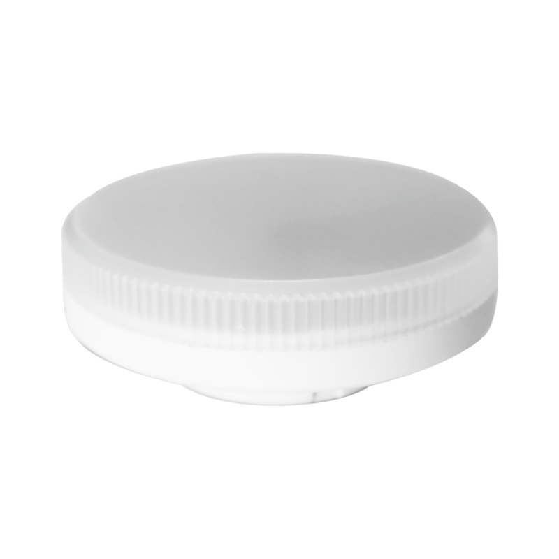 Светодиодная лампочка в форме таблетки с цоколем GX53 обладает мощностью в 15 Вт. Цветовая температура — 4200К (дневной белый свет). Изделие рассчитано на использование в сети с переменным напряжением в 175-265В.