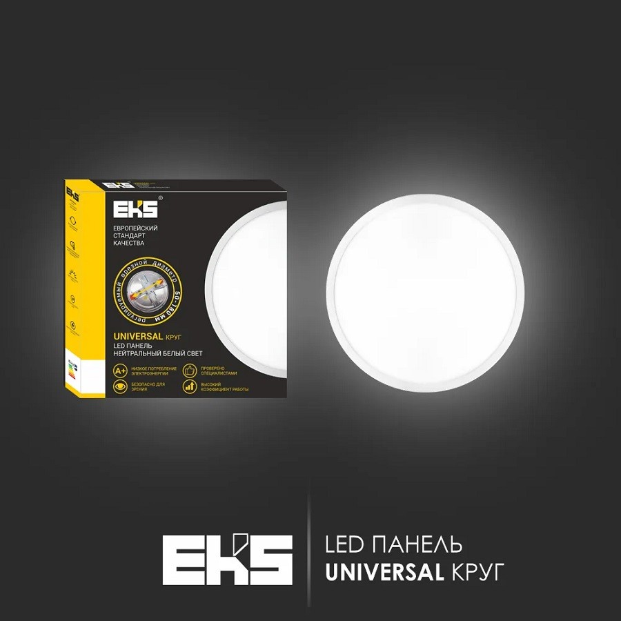 Встраиваемый светодиодный светильник EKS UNIVERSAL для основного, декоративного и акцентного интерьерного освещения. Универсальная LED панель подходит для натяжного потолка и любых подвесных конструкций. Светодиодная панель имеет равномерный яркий свет без пульсаций и мерцания. Не утомляет и не раздражает глаза. 8 Вт, 640ЛМ, 4200К.