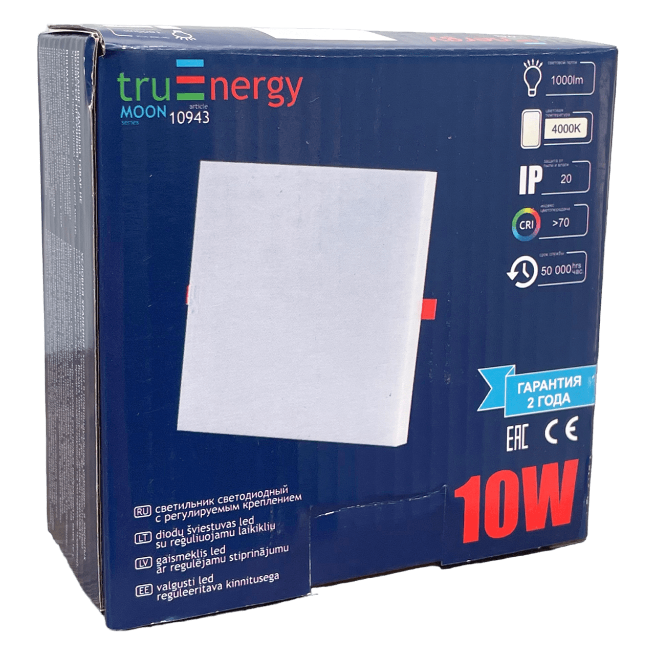 Светодиодный светильник truEnergy с регулируемым креплением квадрат 10W 4000K 1000Lm 98*98мм белый алюминий 10943 имеет матовый безрамочный рассеиватель, который позволяет мягко и равномерно рассеять свет в любом помещении на все 180°. Светильник имеет яркий световой поток 1000Lm. Установка удобная, ведь у него есть регулируемое монтажное крепление, которое можно подогнать под отверстие от 53 до 68мм. Круглое или квадратное, также не имеет значения. Встроенный драйвер высокого качества не только обеспечивает равномерный световой поток без пульсаций, но и работает совершенно бесшумно. Как и другие светодиодные приборы, этот светильник очень экономичный, и в тоже время крайне эффективный вариант освещения любых площадей.