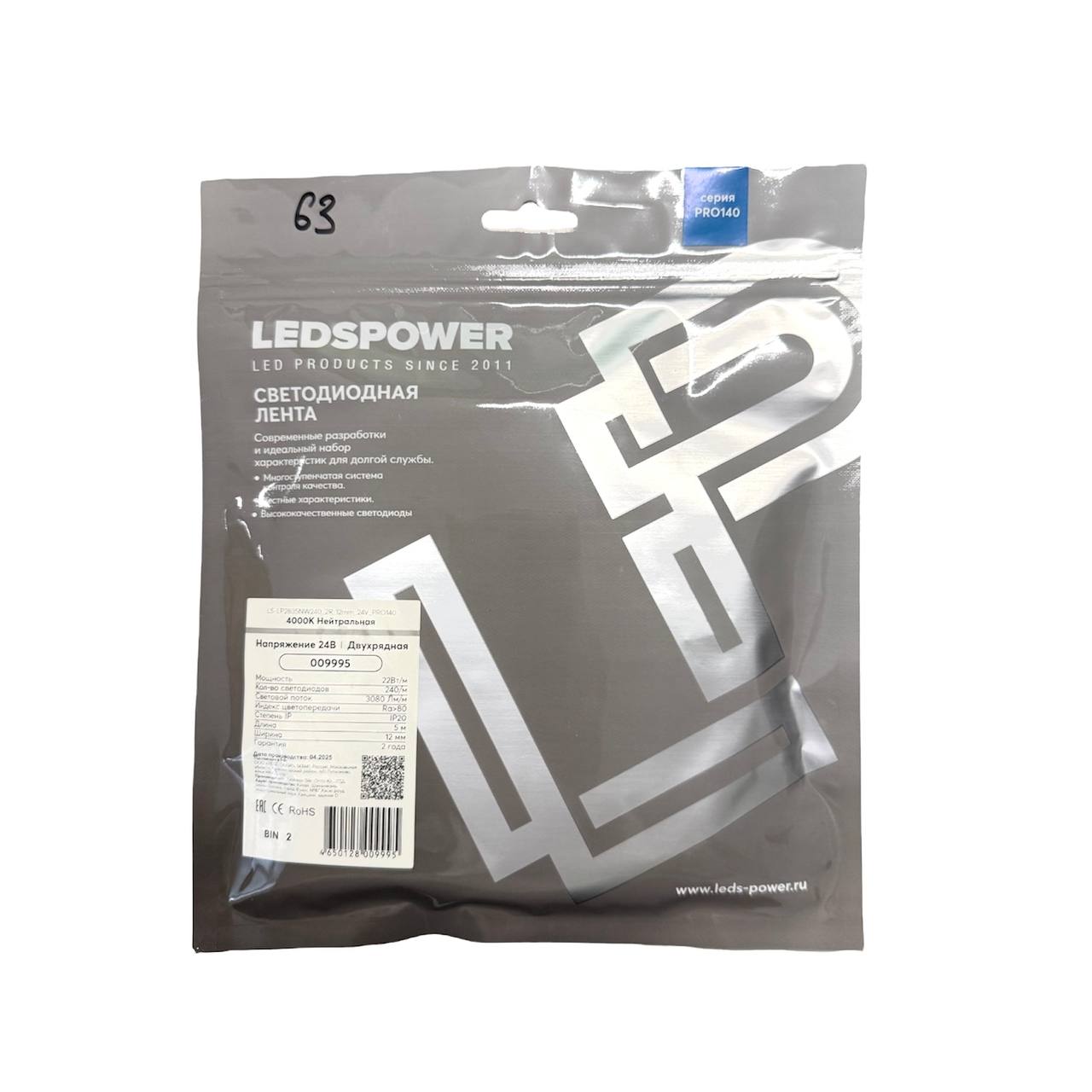 Светодиодная лента LEDS POWER двухрядная 12 мм 2835 240/м (22Вт/м) 24В нейтральная, серия ПРО140 отлично подойдет для освещения помещений, создания декоративного светового дизайна и подсветки мебели. Благодаря высокой яркости и эффективности, эта лента идеальна для использования в офисах, магазинах, кафе, ресторанах и жилых помещениях. LEDS POWER - надежный производитель светодиодных изделий, а характеристики данной ленты обеспечат долгий срок службы и качественное освещение.