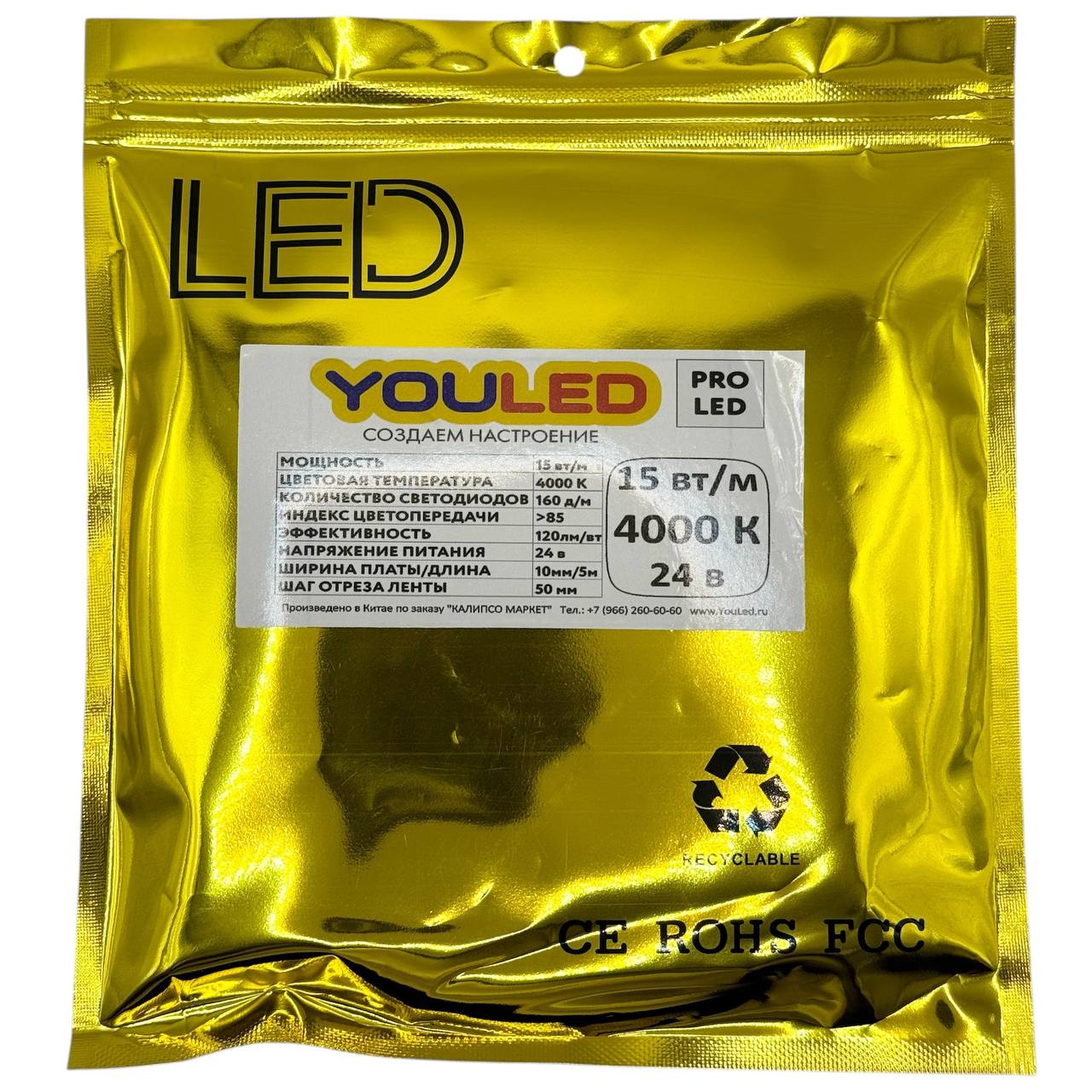 (315) Лента светодиодная YouLED PROLED 15Вт 24В 4000К 160д/м