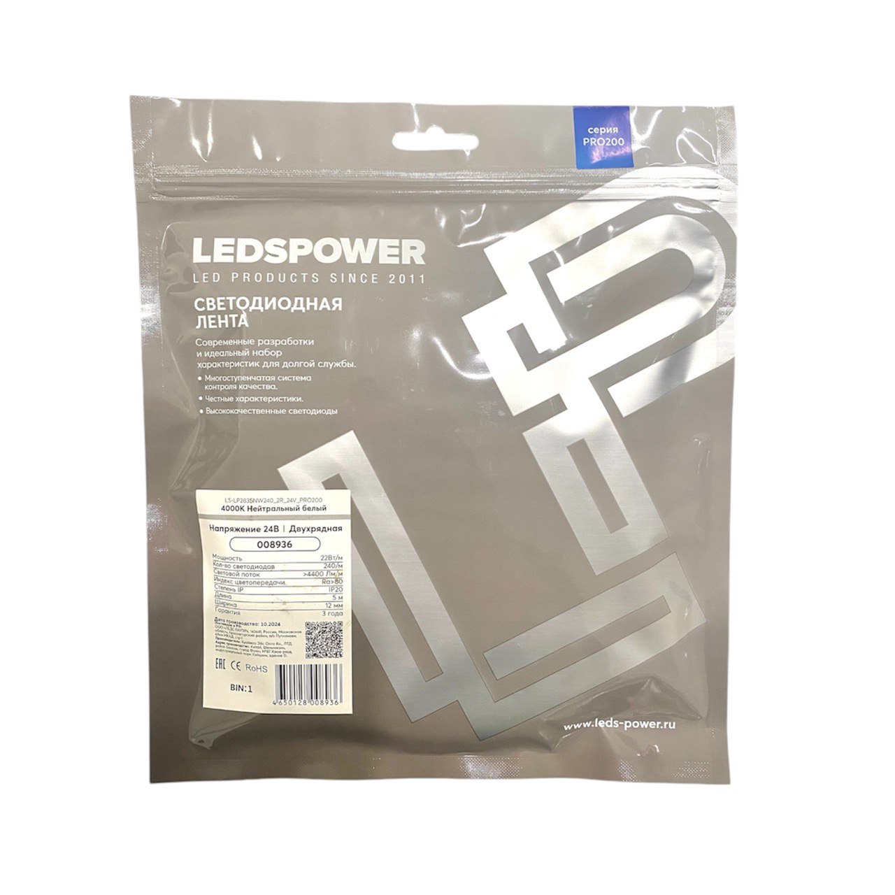 Светодиодная лента LEDS POWER двухрядная 12 мм 2835 240/м (22Вт/м) 24В нейтральная, серия ПРО200 отлично подойдет для освещения помещений, создания декоративного светового дизайна и подсветки мебели. Благодаря высокой яркости и эффективности, эта лента идеальна для использования в офисах, магазинах, кафе, ресторанах и жилых помещениях. LEDS POWER - надежный производитель светодиодных изделий, а характеристики данной ленты обеспечат долгий срок службы и качественное освещение.