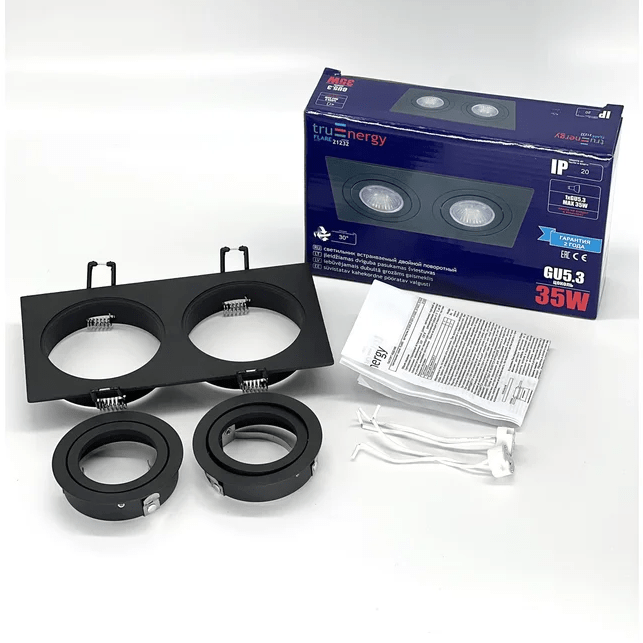 TruEnergy Светильник встраиваемый поворотный двойной под лампы 2* GU5.3, ЧЕРНЫЙ, алюминий, 92*175мм