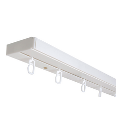 ПВХ карниз с двумя дорожками для крючков.  Ширина карниза 7,6 см, толщина 1,7 см. Предназначен для навешивания легких штор в несколько рядов. Стандартно карниз предназначен для потолка, но с помощью металлических кронштейнов его можно установить на стену. На ПВХ шину можно повесить бленду...