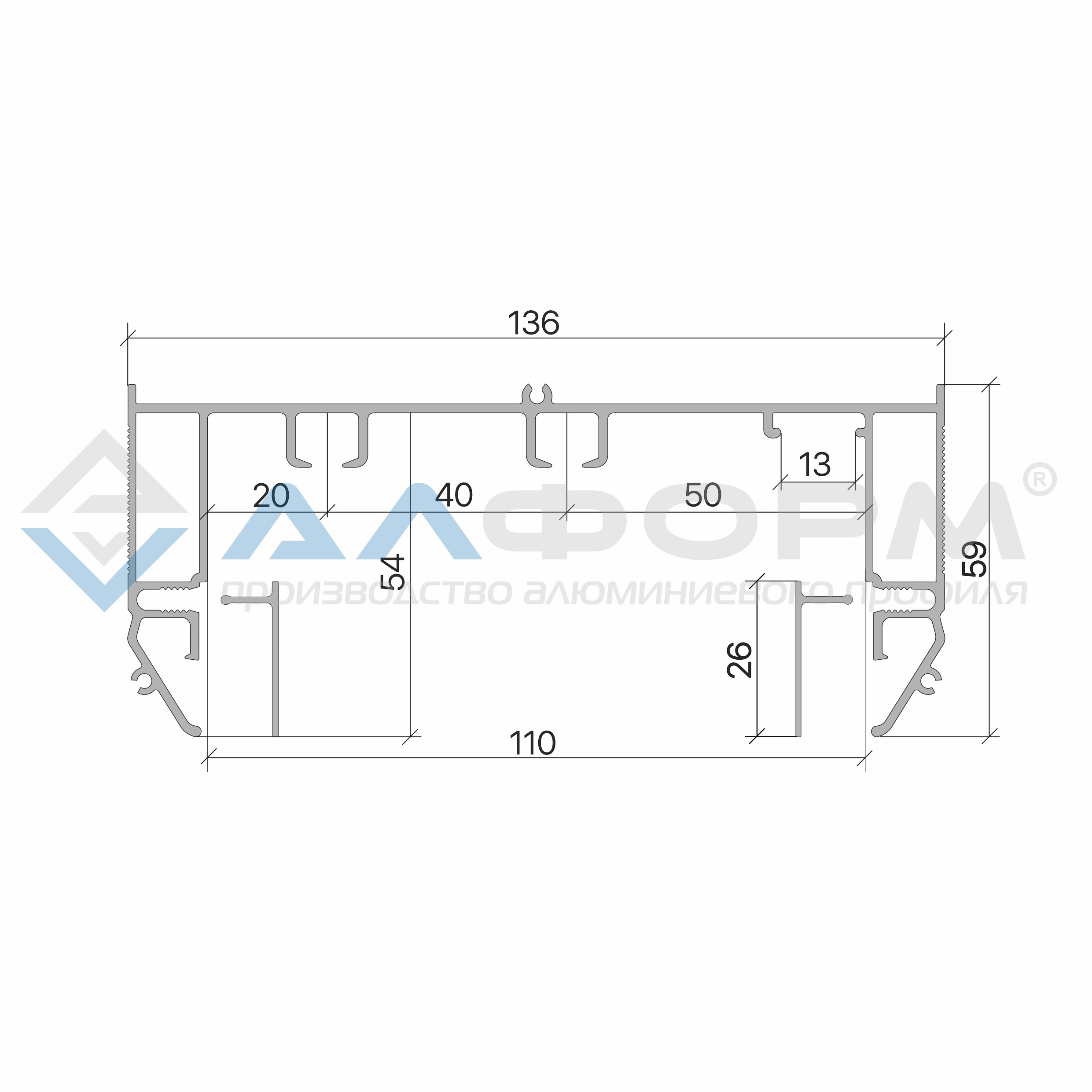 Карниз имеет горизонтальное расположение LED-ленты, свет направлен вертикально вдоль шторы. С помощью установки светорассеивателя, световой поток становится более мягким и равномерным. Посадочное место для светодиодной ленты имеет широкий паз, который позволяет использовать различные типы лент, включая RGB-ленты, для создания различных сценариев световых эффектов. Эффективная теплоотдача профиля позволяет увеличить срок службы светодиодной ленты.