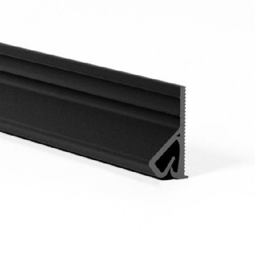 Багет "прищепка" стеновой представляет собой профиль ПВХ с упругим зажимом-клипсой. Выполнен из непластифицированного поливинилхлорида и имеет черный цвет. Его применяют для монтажа французских тканевых потолков Clipso (Клипсо) и немецких тканей Descor (Дескор).