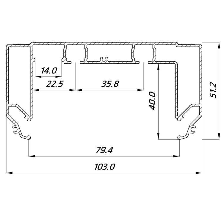 Профиль Flexy GARDINA2 05 для изготовления скрытых п-образных карнизных ниш с двумя пазами для установки штор и гардин. С подсветкой. Для гарпунной системы крепления полотна.