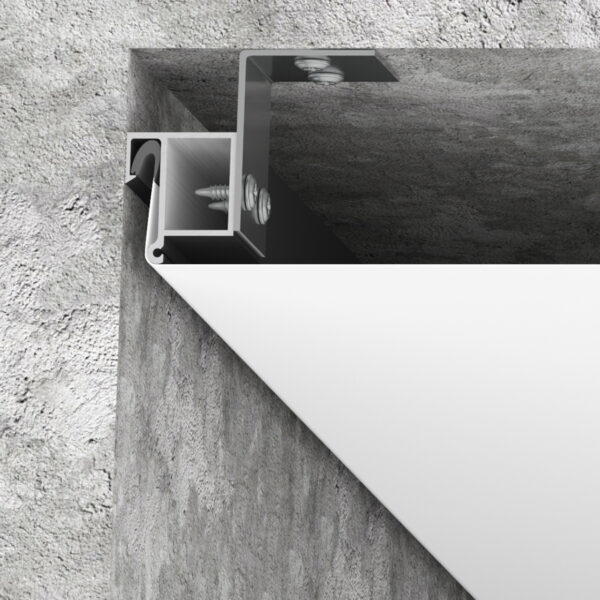 Профиль Lumfer BT (Брус теневой) используется для крепления натяжного потолка с теневым контуром в тех местах, где крепление профиля к стене не рекомендуется или невозможно. Таких как: стекло, плитка керамогранитная, направляющая планка для дверей шкафа купе, тонкая стена, наличие проводки в стене.