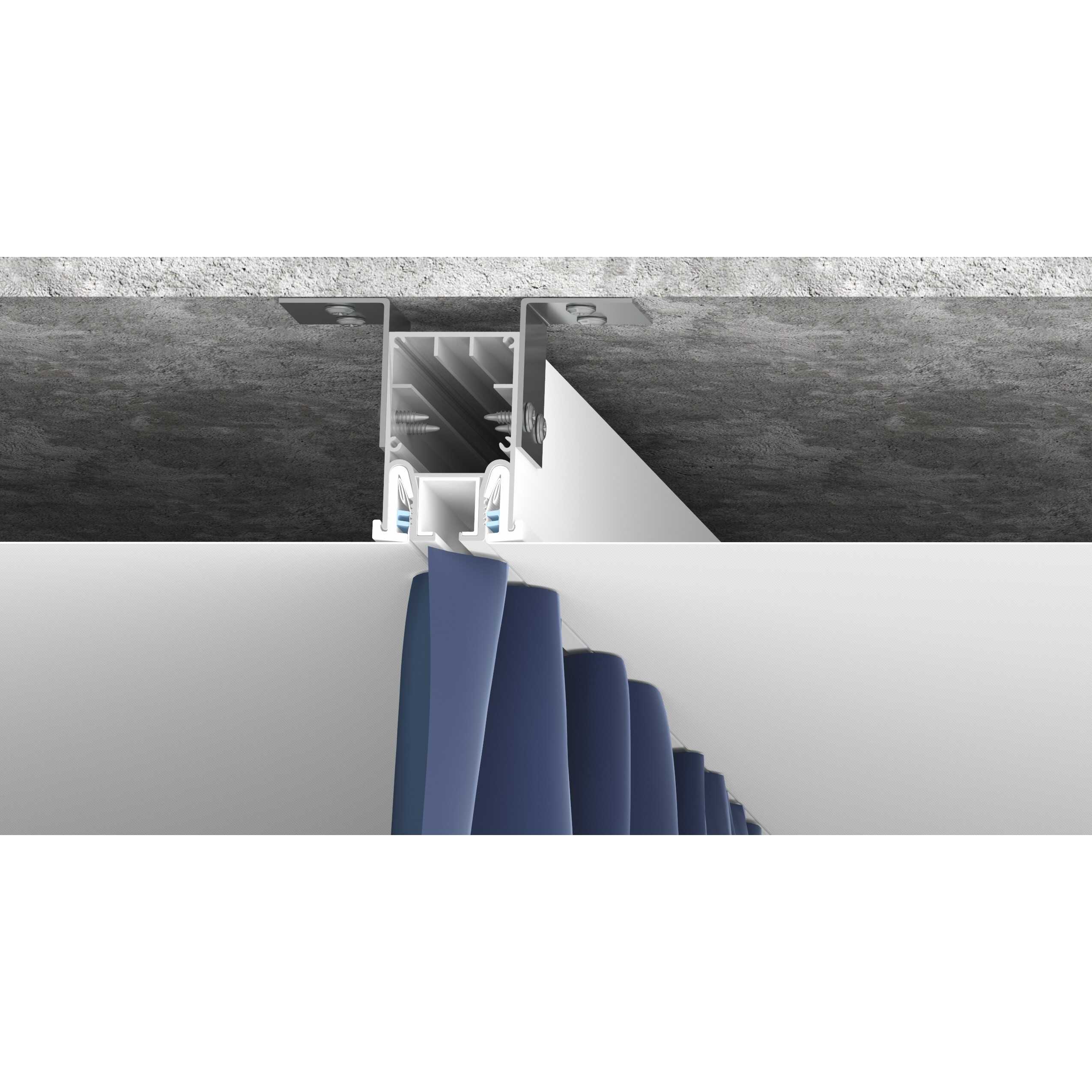 Однорядный карниз – При помощи профиля Cornice Uno монтируется тканевый или ПВХ потолок со встроенным однорядным карнизом. Карниз обладает увеличенным размером камеры для бегунков. Конструкция профиля предусматривает фиксацию любого тканевого или ПВХ полотна при помощи современной системы крепления «Clamp». Оптимальное решение для организации однорядного карниза, в помещении любого типа.