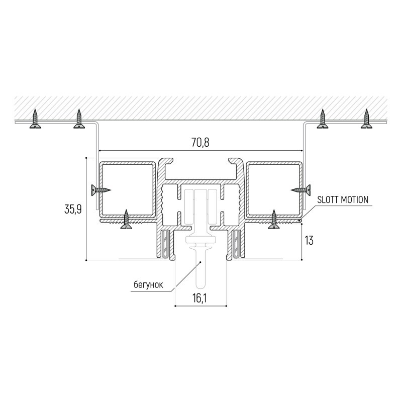 Система SLOTT Motion – это система карнизов для штор, которая полностью монтируется в запотолочное пространство и позволяет скрыть технические элементы механизма открытия и закрытия штор без создания специальных ниш. Визуально карниз выглядит как «прорезь» в потолке шириной 17 мм, в которой расположены крючки крепления штор. Основанная на узле SLOTT карнизная система SLOTT Motion гармонично и легко монтируется в любые виды натяжных потолков (ПВХ, ткань). А специальные «крылья» карнизного профиля SLOTT Motion позволяют смонтировать его и в гипсокартонные потолки. Базовой версией карнизной системы SLOTT Motion является «механическая», предполагающая открытие и закрытие штор вручную путем перемещения шторы за полотно.
