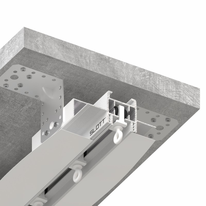 Система SLOTT Motion – это система карнизов для штор, которая полностью монтируется в запотолочное пространство и позволяет скрыть технические элементы механизма открытия и закрытия штор без создания специальных ниш. Визуально карниз выглядит как «прорезь» в потолке шириной 17 мм, в которой расположены крючки крепления штор. Основанная на узле SLOTT карнизная система SLOTT Motion гармонично и легко монтируется в любые виды натяжных потолков (ПВХ, ткань). А специальные «крылья» карнизного профиля SLOTT Motion позволяют смонтировать его и в гипсокартонные потолки. Базовой версией карнизной системы SLOTT Motion является «механическая», предполагающая открытие и закрытие штор вручную путем перемещения шторы за полотно.