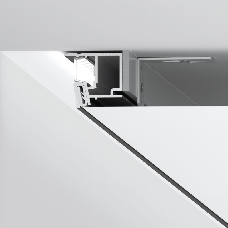 Система не комплектуется источником света (светодиодной лентой). Источник подбирается исходя из требований к дизайну помещения и цветовой температуре. Рассеиватель профиля спроектирован таким образом, чтобы свет, исходящий из профиля, не имел видимых границ на стене и не имел свойств «проявочного освещения», способного выявить неровности стены. Профиль может быть установлен на расстоянии от 2,5 до 10 см от стены.