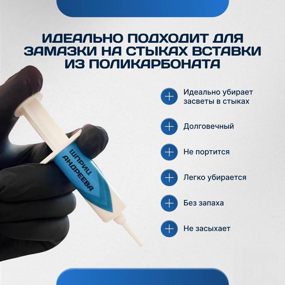 Замазка для швов рассеивателя из поликарбоната "Шприц Андреева"