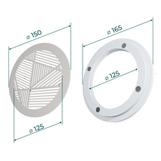 Теневой диффузор применяется для натяжного потолка из ПВХ и ткани. В комплекте вентилятора нет. Технические характеристики: - Диаметр видимой части: 125 мм; - Переход на трубу d100 мм; - Пропускная способность равна трубе d70мм. В комплекте вентилятора нет.